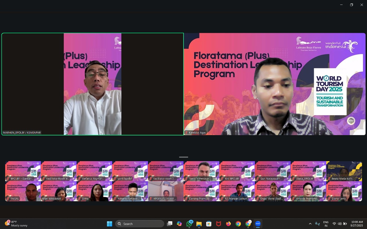 Badan Pelaksana Otorita Labuan Bajo Flores (BPOLBF) terus mendorong lahirnya pemimpin-pemimpin destinasi pariwisata yang visioner dan berakar kuat pada potensi lokal melalui penyelenggaraan Floratama (Plus) Destination Leadership Program (FDLP). Program ini telah memasuki tahapan penting berupa Workshop Presentasi Project Plan, yang digelar pada Sabtu (27/09/2025) secara daring melalui platform Zoom.